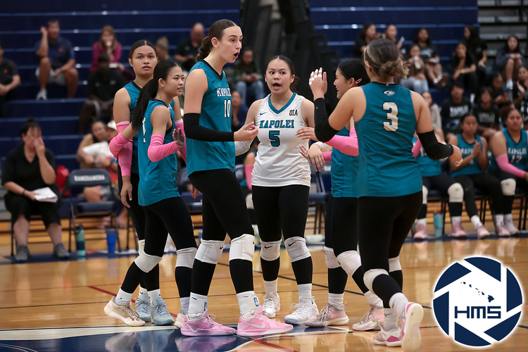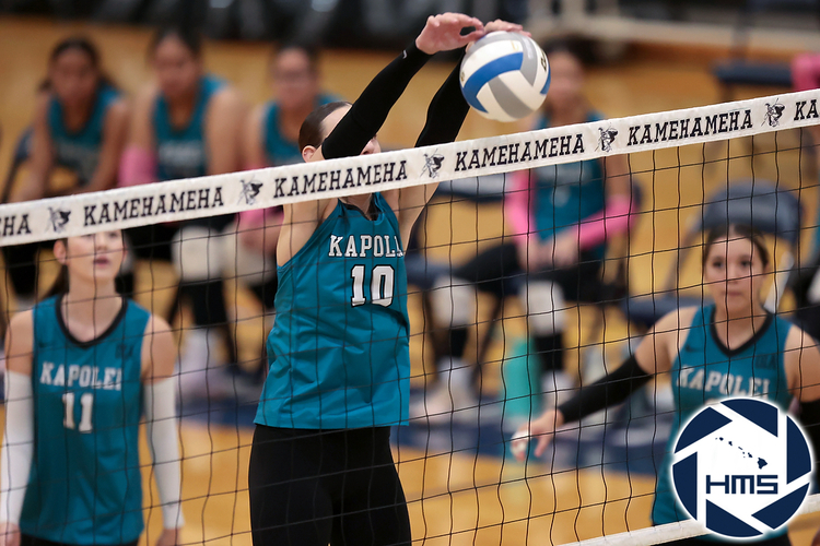 In the first round of the HHSAA Division I Girls Volleyball Championship on Monday, Kamehameha–Kapalama defeated Kapolei in straight sets to advance to the quarterfinals.